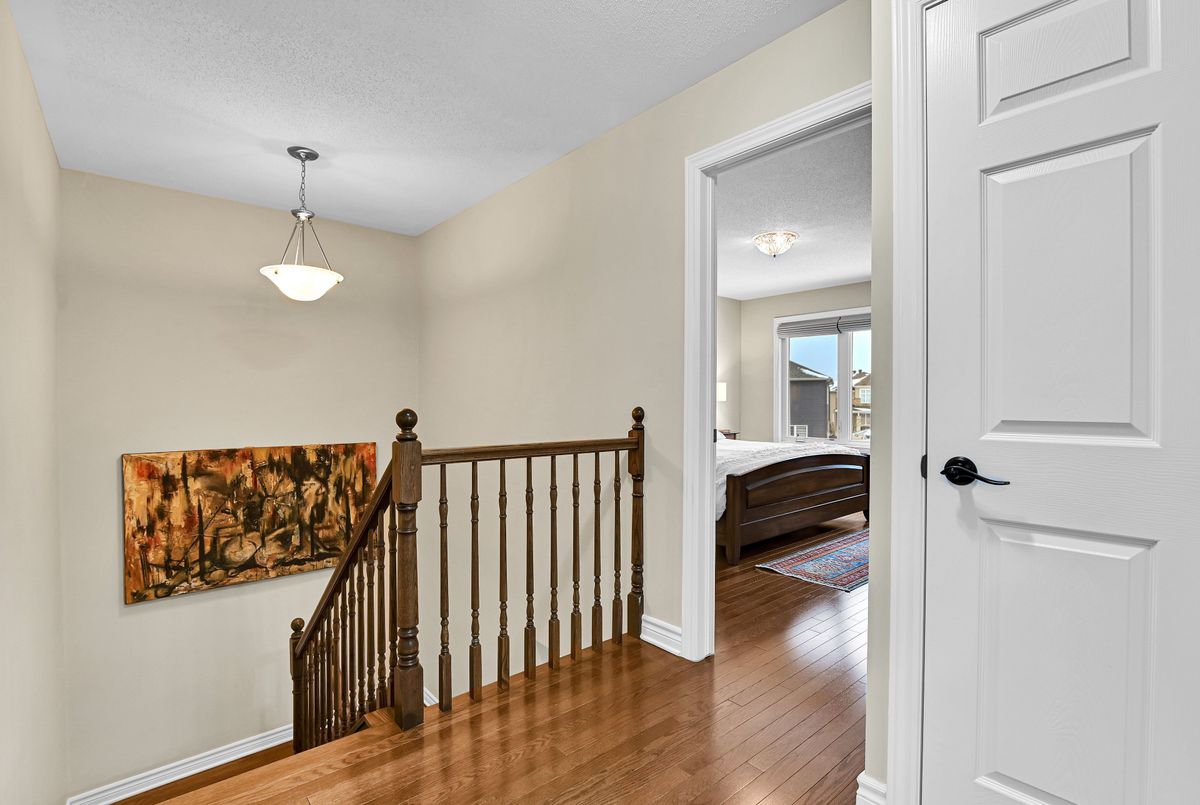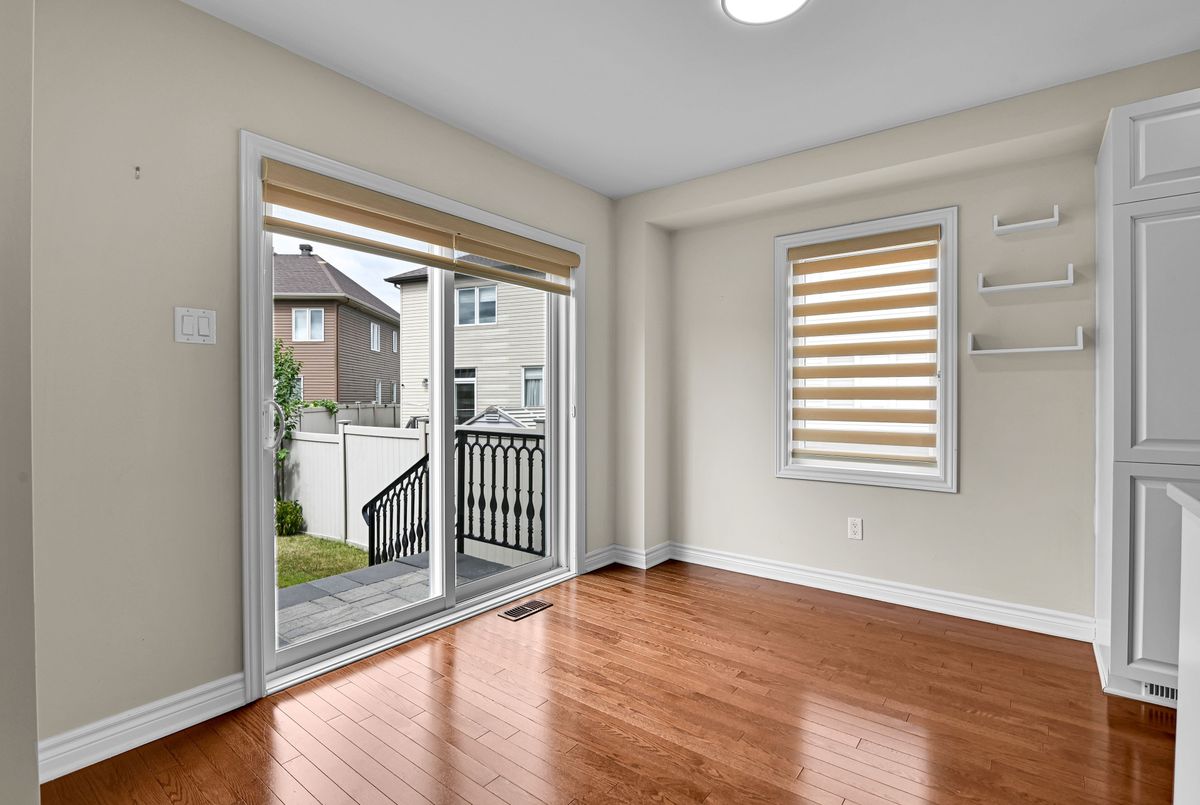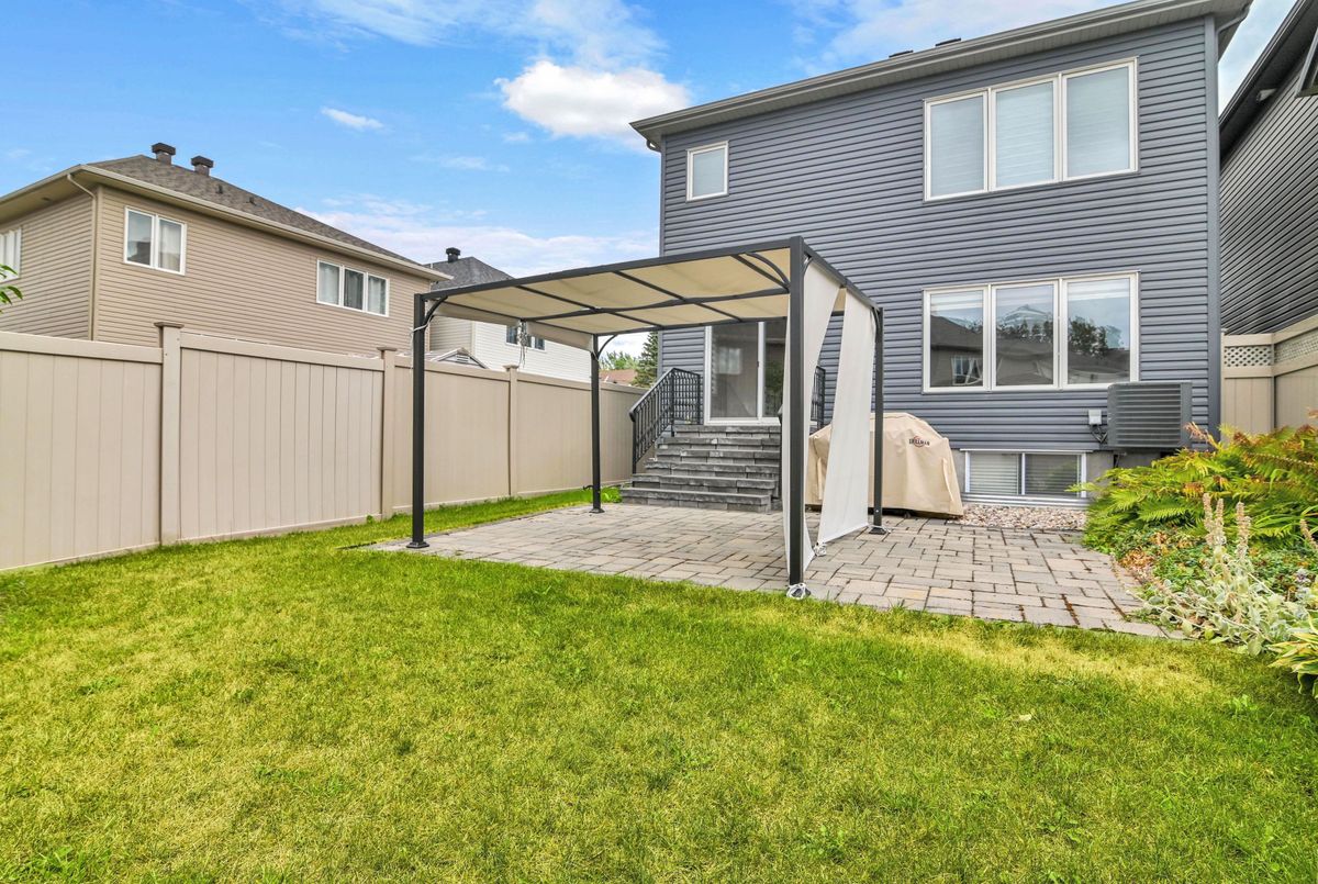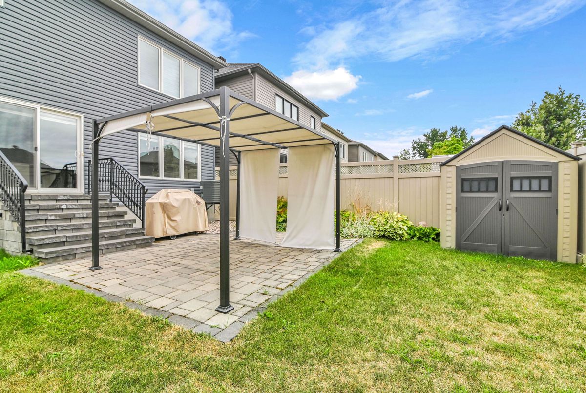Welcome to this stunning 9-year-old custom Minto Elora home offering 3 bedrooms, 3 stylish bathrooms, and a fully finished basement in the sought-after community of Chapel Hill South, surrounded by nature trails, parks, and top-rated schools. Exceptional curb appeal is showcased through custom interlock landscaping, a full vinyl fence, and a charming pergola perfect for outdoor dining and entertaining. Inside, the home blends modern design with family-friendly function, featuring hardwood flooring throughout the main and second levels, a hardwood staircase, and imported ceramic tile in all wet areas. The chef-inspired kitchen is equipped with high-end stainless-steel appliances, a chef-grade gas range, soft-close cabinetry, a center island with bar seating, and generous prep space, while the formal dining room and spacious great room with a stone gas fireplace provide inviting spaces to gather. A versatile main-floor den adds flexibility for a home office or playroom. Upstairs, the serene primary suite offers a walk-in closet and spa-like ensuite with a double glass shower and elegant finishes, complemented by two additional bedrooms for family, guests, or work-from-home needs. The finished basement includes a media room, fitness area, and a large laundry/utility room with a rough-in for a future bathroom. Three beautifully appointed bathrooms feature quartz countertops, designer cabinetry, and upgraded fixtures, while additional highlights include custom blinds, a single-car garage with inside entry, and a low-maintenance backyard with stone hardscaping ideal for children, pets, or relaxing evenings. This impeccably maintained, turnkey home delivers comfort, style, and convenience in one of Orléans most desirable neighborhood's. Please note the Seller will request a written mortgage commitment with all offers, as a previous offer fell through due to an unqualified buyer.